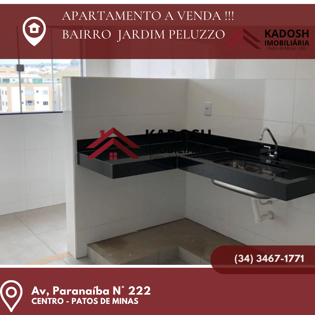 Localizado no Bairro Peluzzo em Patos de Minas. – Cozinha – 01 W.C. Social – 01 Lavandaria – 02 quartos – 01 suíte – 76 metros quadrados – 01 vaga na garagem